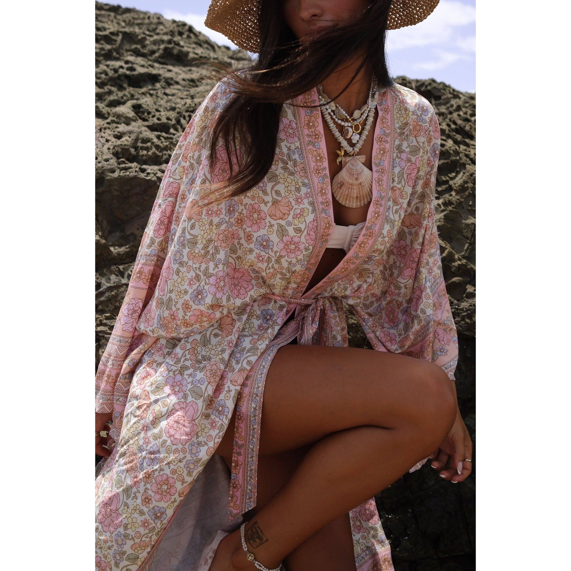 A simple but beautiful life ~ one filled with books and cups of tea, fresh linen, and fluffy pillows ~ it’s why this robe was created. Coven’s most coveted robe style was made for the beach life, and makes your days at home that little bit sweeter. Get ready in your robe, relax in your robe, sign for all your online shopping deliveries in your robe, or even slip it on over a simple dress and head out of the house. It is a timeless and versatile piece that will always be a dream to wear. The style is very free fitting, one size fits all (size AU 6-24 or US 2-20). * Consciously created, by ethically accredited partners * Carefully crafted to ensure garment longevity, resulting in low cost per wear * Slow fashion - these pieces take months to craft, which ensures the quality is top tier, so you're able to cherish these pieces for many, many years to come * Meticulously designed with attention to detail * Wide, comfortable sleeves * Hidden side pockets