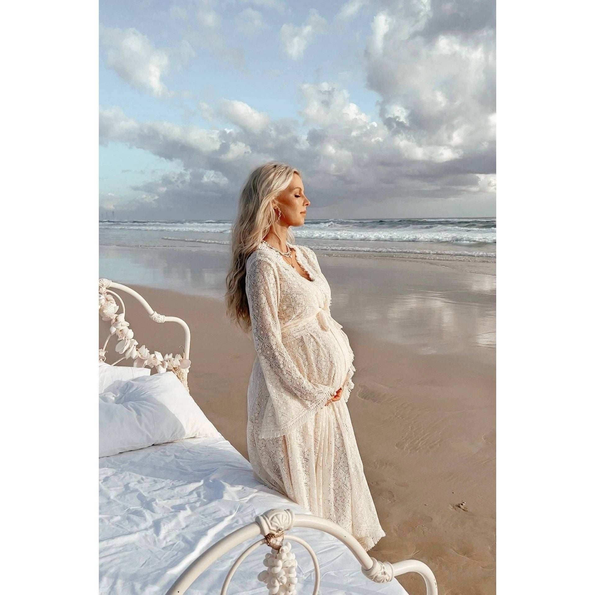 Description Our #1 best selling item of all time. Loved by women all over the globe, this piece continues to be our most loved piece for the last 6 years and counting. Named the ‘Pirate Queen’ gown for its beautifully tattered look. With dipped hems, shaggy fringe, and frayed edges, we designed this wrap dress to look like something a beautiful island princess would make for herself while living as a castaway on a deserted island. Very popular amongst pregnant women, for baby showers + photoshoots... The beauty of this piece is that it will accommodate the bump (being an adjustable wrap dress) and then once the baby arrives, it’s still a piece you can continue to wear!