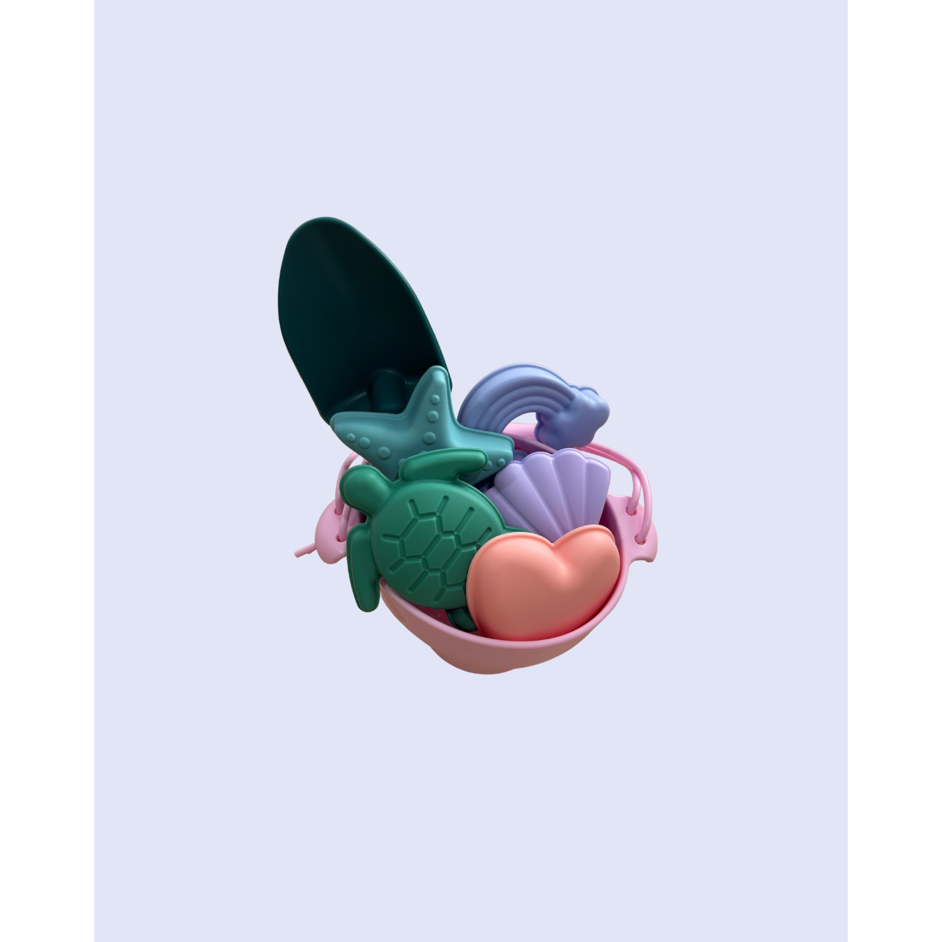 Complete with spade, bucket and moulds for heaps of imaginary beach play! Crafted from premium 100% food-grade silicone, it's devoid of harmful chemicals like BPA, phthalates, and lead, ensuring a safe and worry-free playtime. Unlike plastic counterparts, our bucket is flexible and crack-resistant, making it easy to pack for beach adventures. Designed to inspire exploration and creativity, our beach bucket transforms sandcastles into masterpieces and seashell hunting into an immersive sensory experience. Plus, cleanup is a breeze with its hygienic and dishwasher-safe design—no mould worries here! SET INCLUDES: Silicone Beach Bucket Silicone Spade 5 x Beach Themed moulds Made from premium quality 100% food-grade non-toxic silicone. * Hygienic and easy to clean * Dishwasher-safe * Flexible and durable * FDA and LFGB approved * BPA free