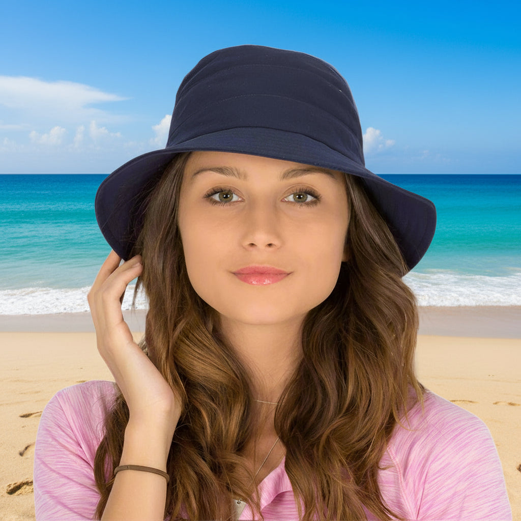 The RL76 Golf Bucket, A simple solution for sun coverage without compromising on your style. This casual bucket style sun hat provides excellent UPF50+ protection with a classic silhouette which will never go out of style. The down sloping 7cm brim and durable fabric will make this bucket hat your go to hat for years to come. An internal drawstring adjusts sizing to ensure comfort for wearing all day. Comprising great style and shape, this casual cotton bucket style hat, is crushable, packable and washable and is an excellent choice for travelling.