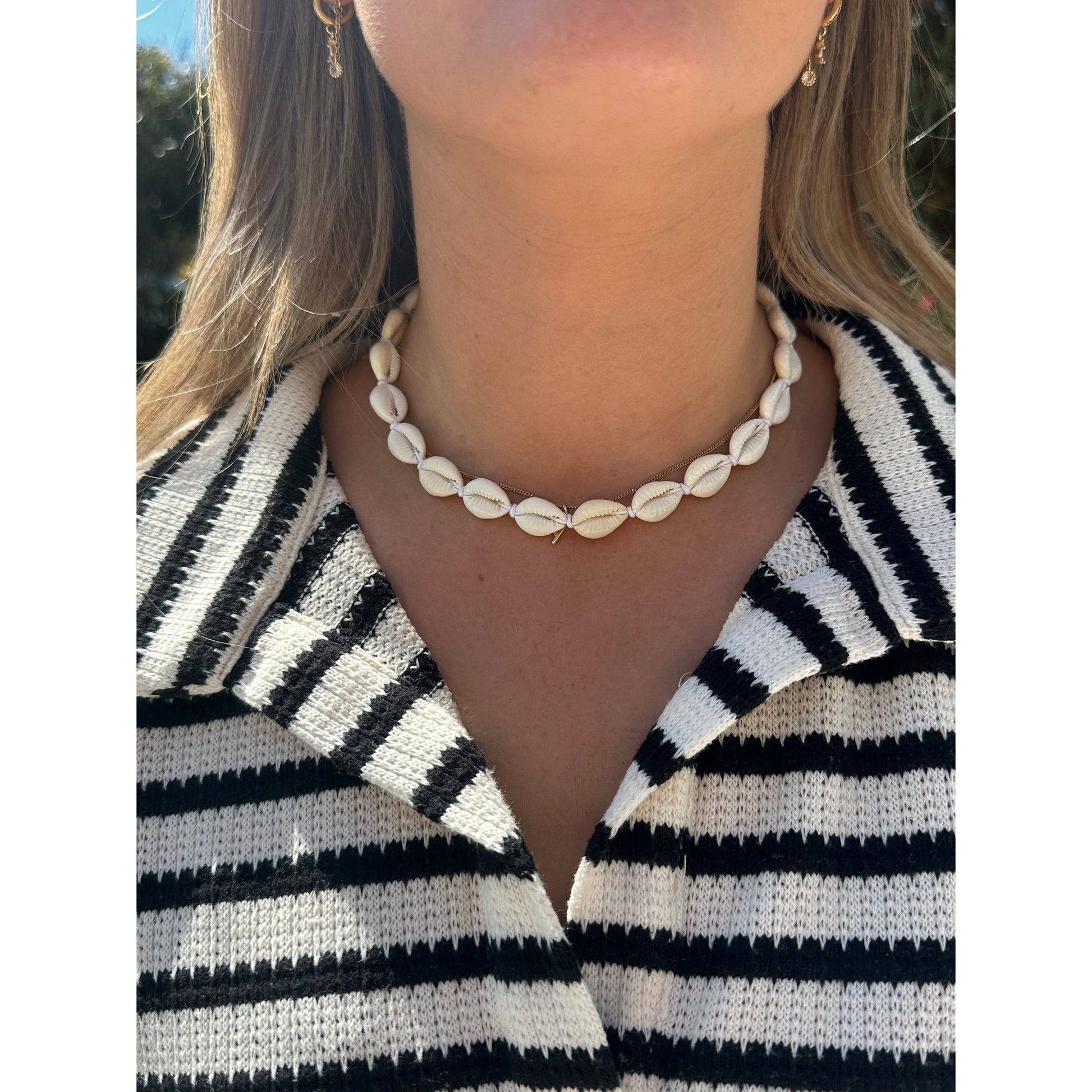 Make your look complete with this shell necklace. Handcrafted with quality materials, this bracelet combines fashion and art in a stylish way. A must-have accessory for any modern wardrobe. Pair it back with our Shell Bracelet. Adjustable band to fit all sizes Hand Made, Slow Made.